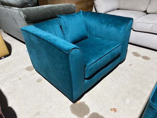 Sold outTeal velvet cuddler armchair