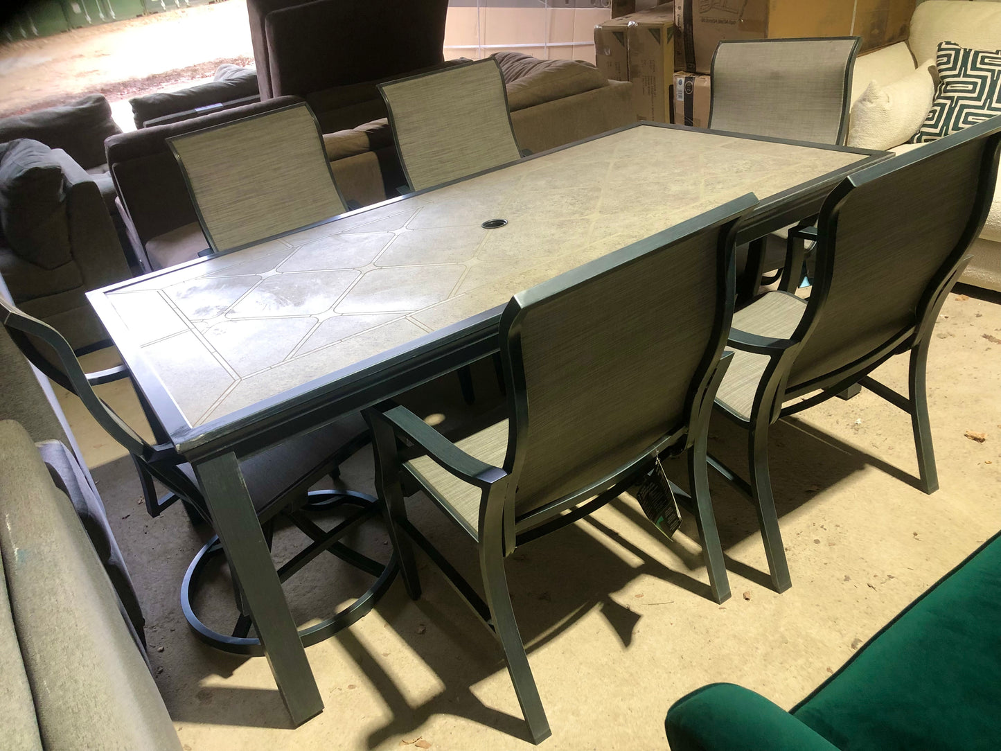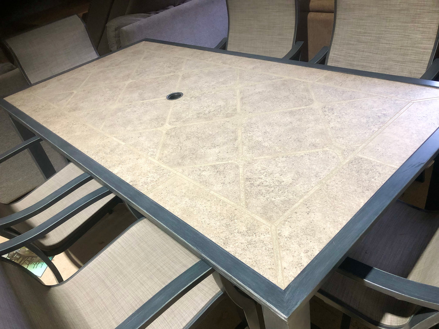 Very stylish new 6 seater dining set, with stone top dining table (78 inches x 40)