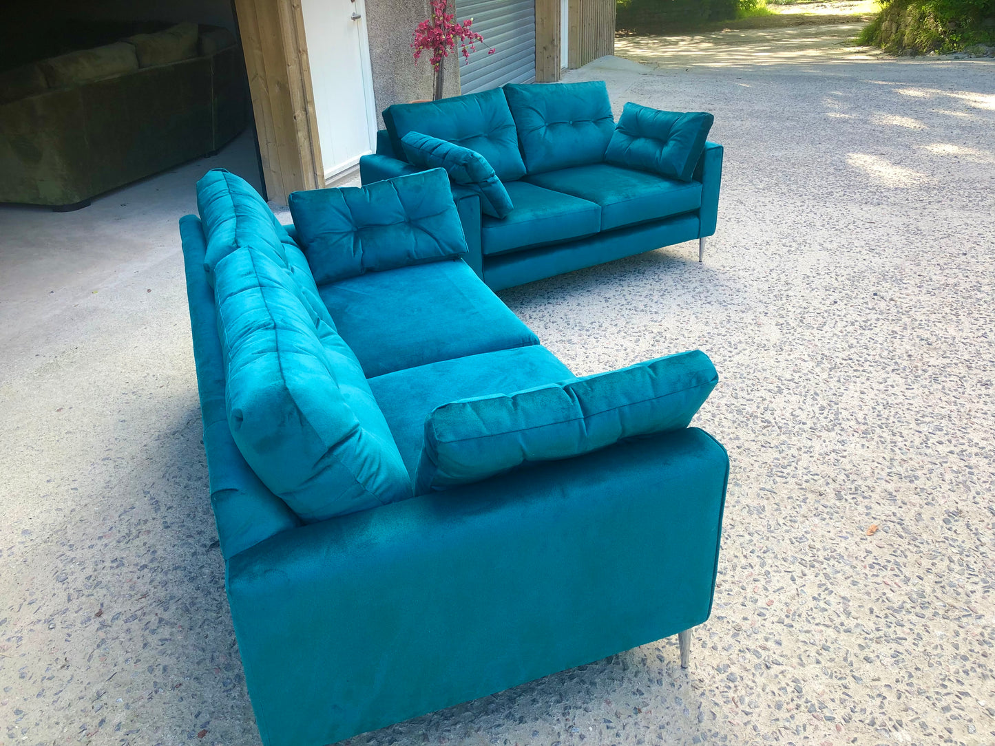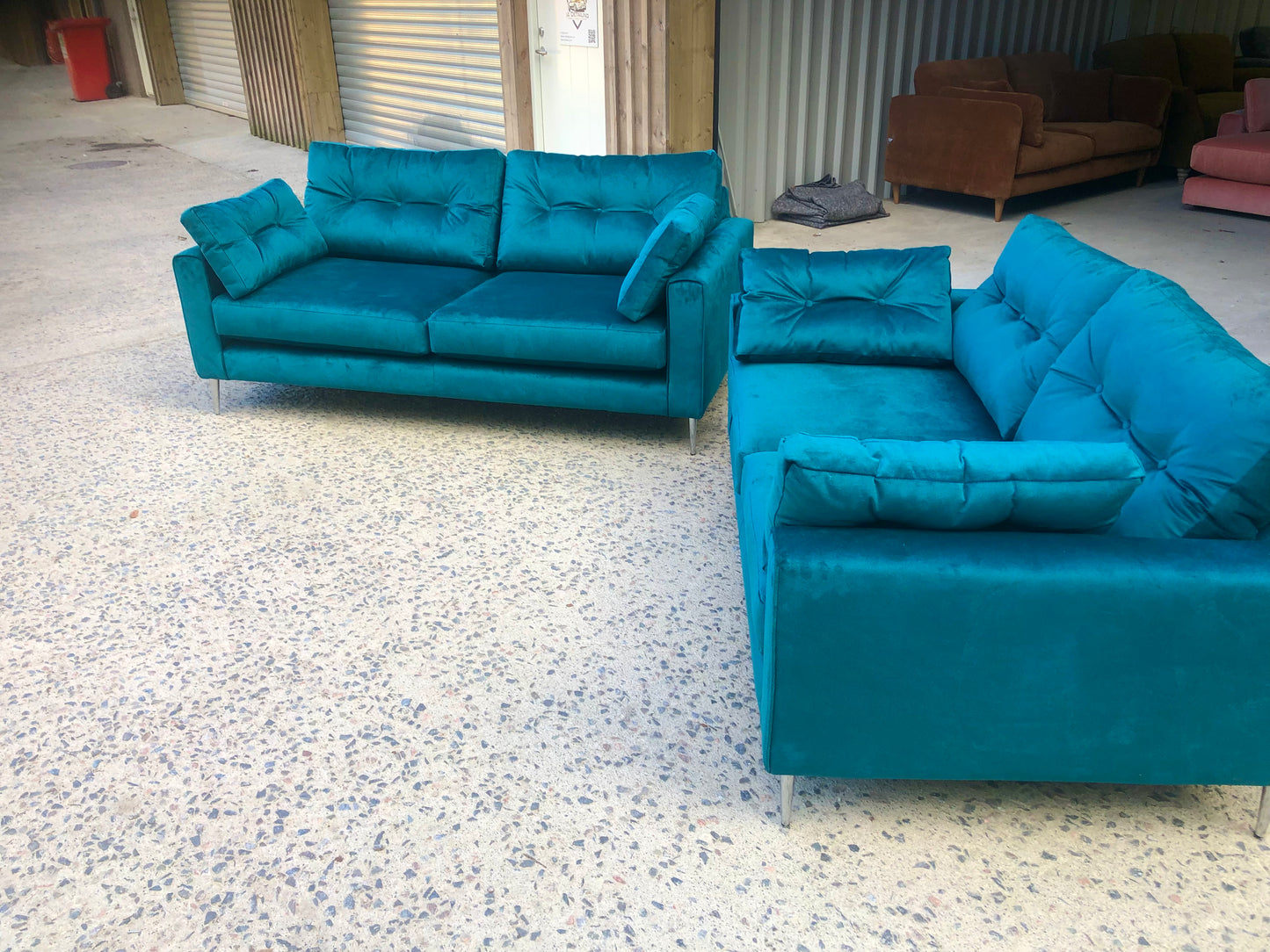 Absolutely gorgeous pair of Teal Velvet sofas.