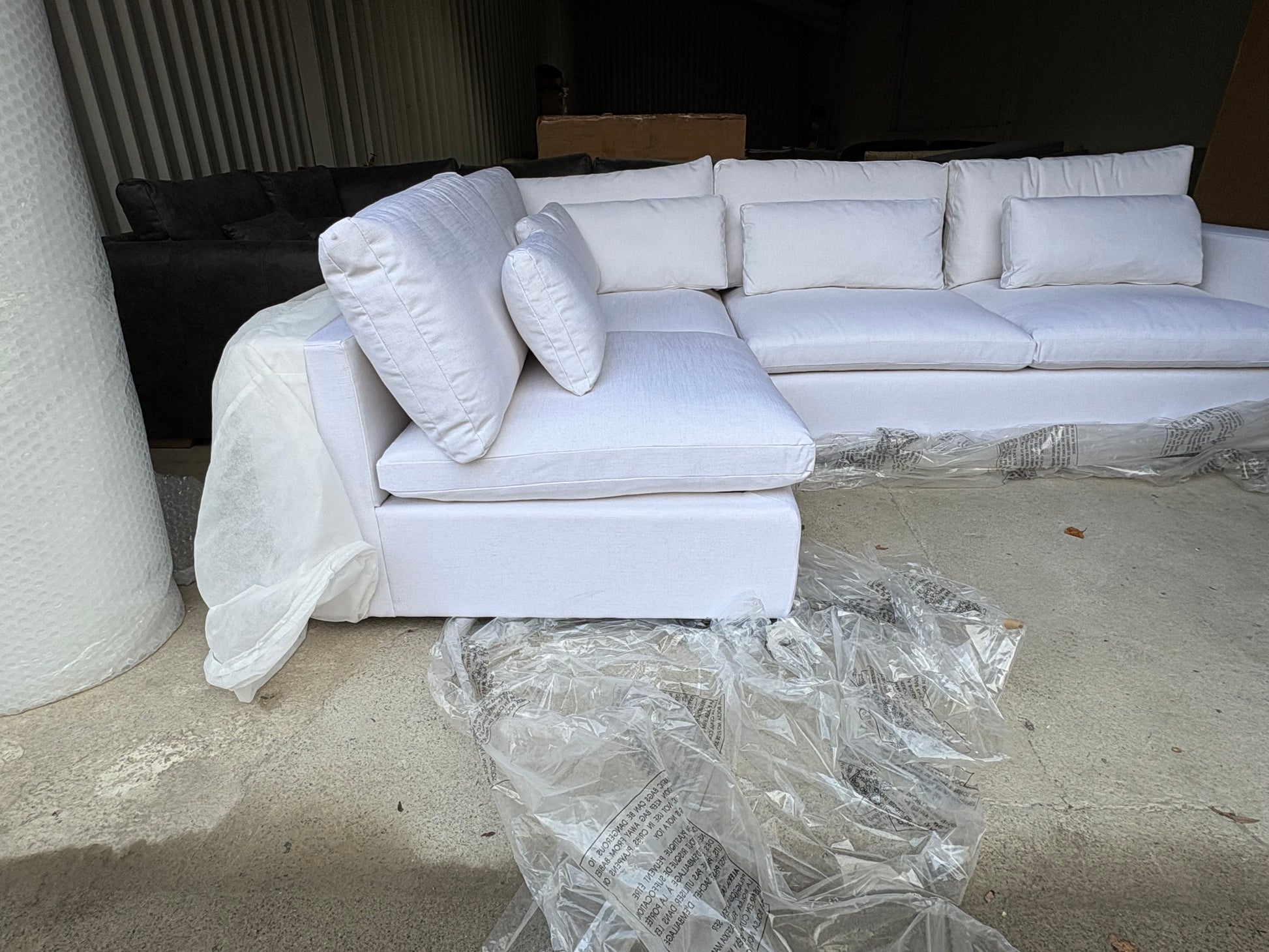 Outstanding brand new corner sofa in stunning Optic White fabric.