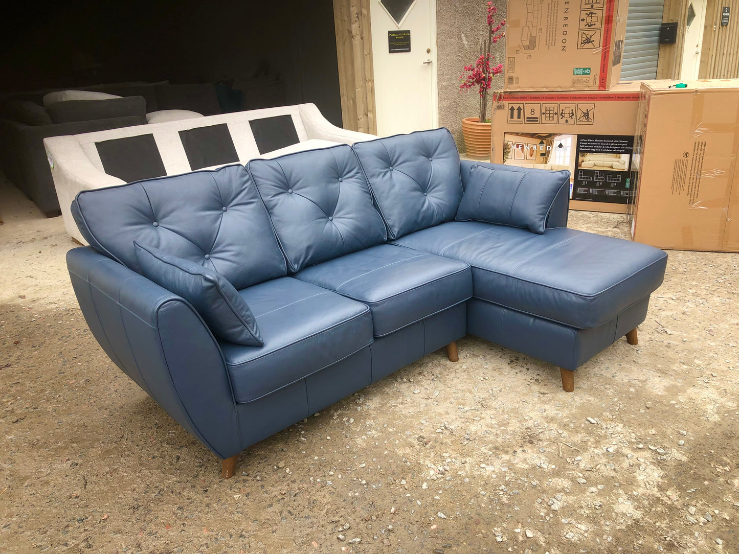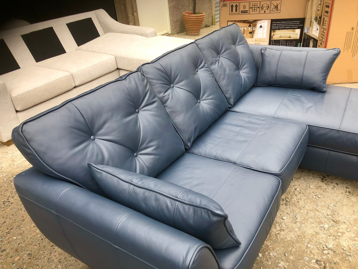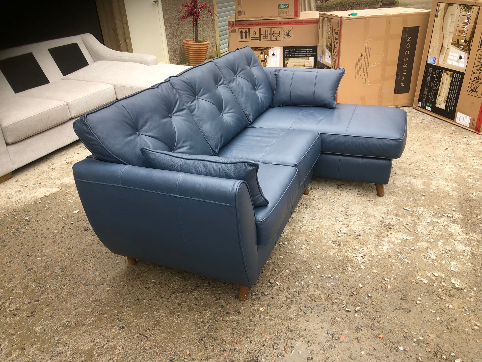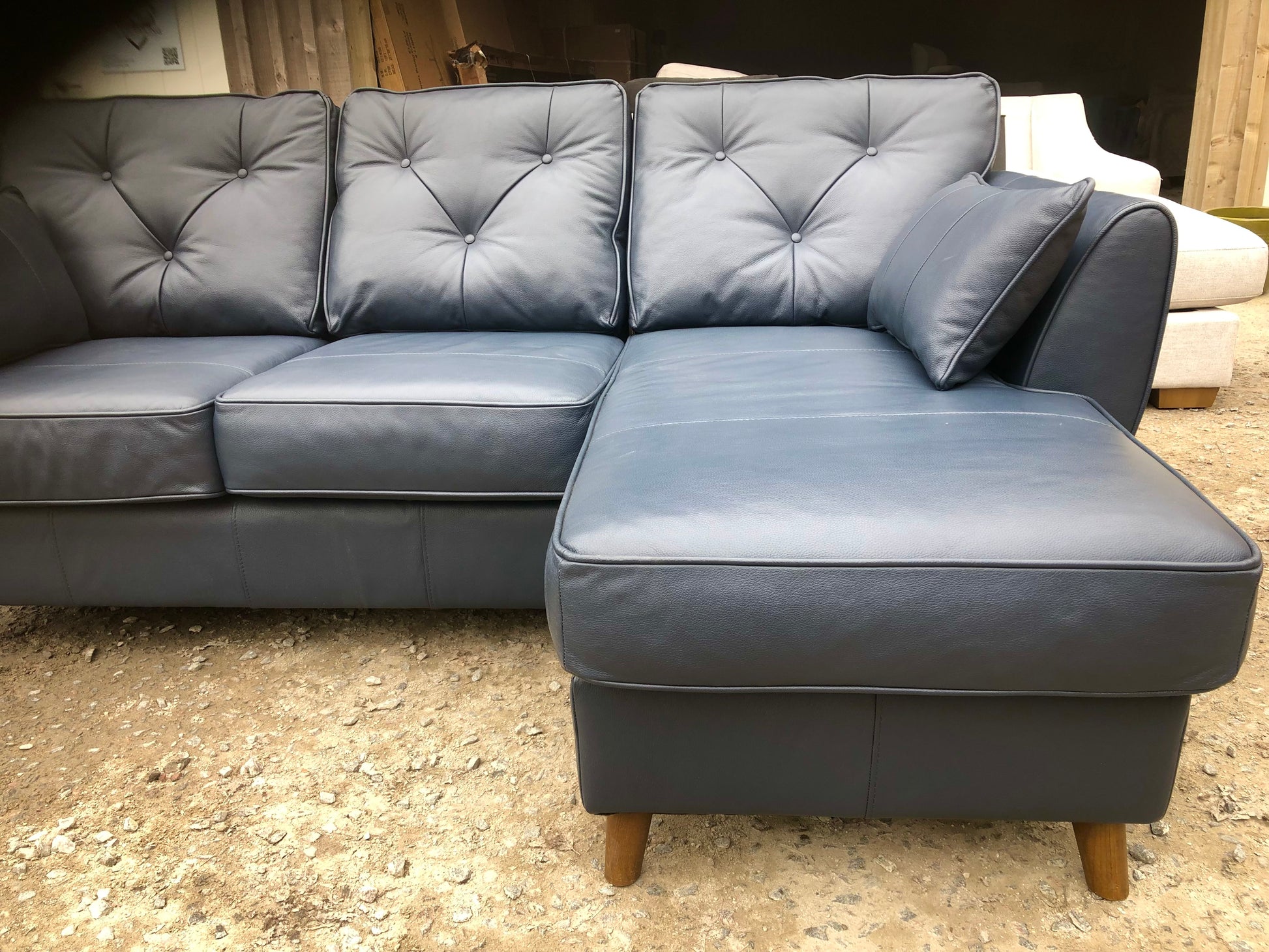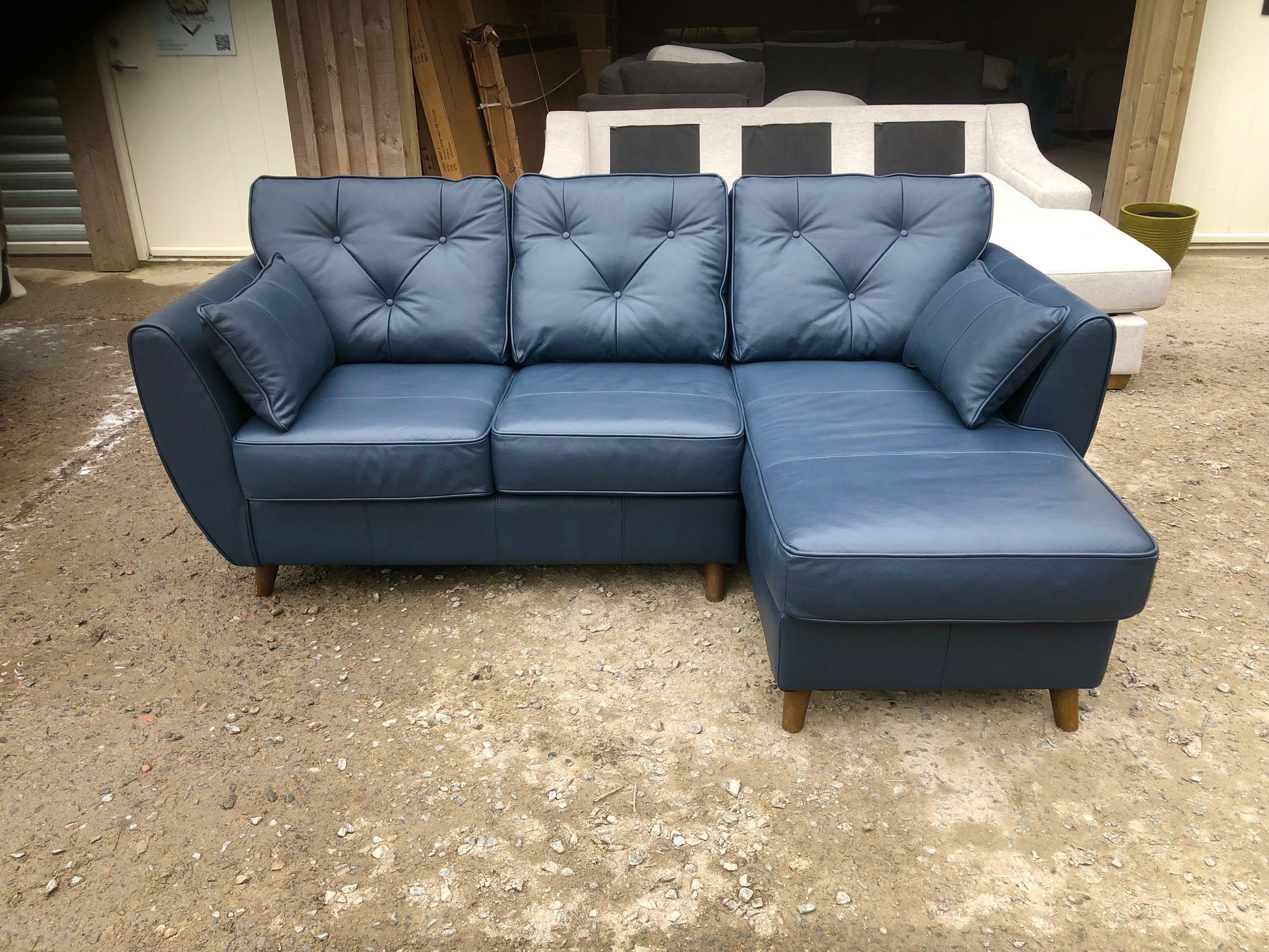 Super stylish brand new compact corner sofa in Navy Blue leather.