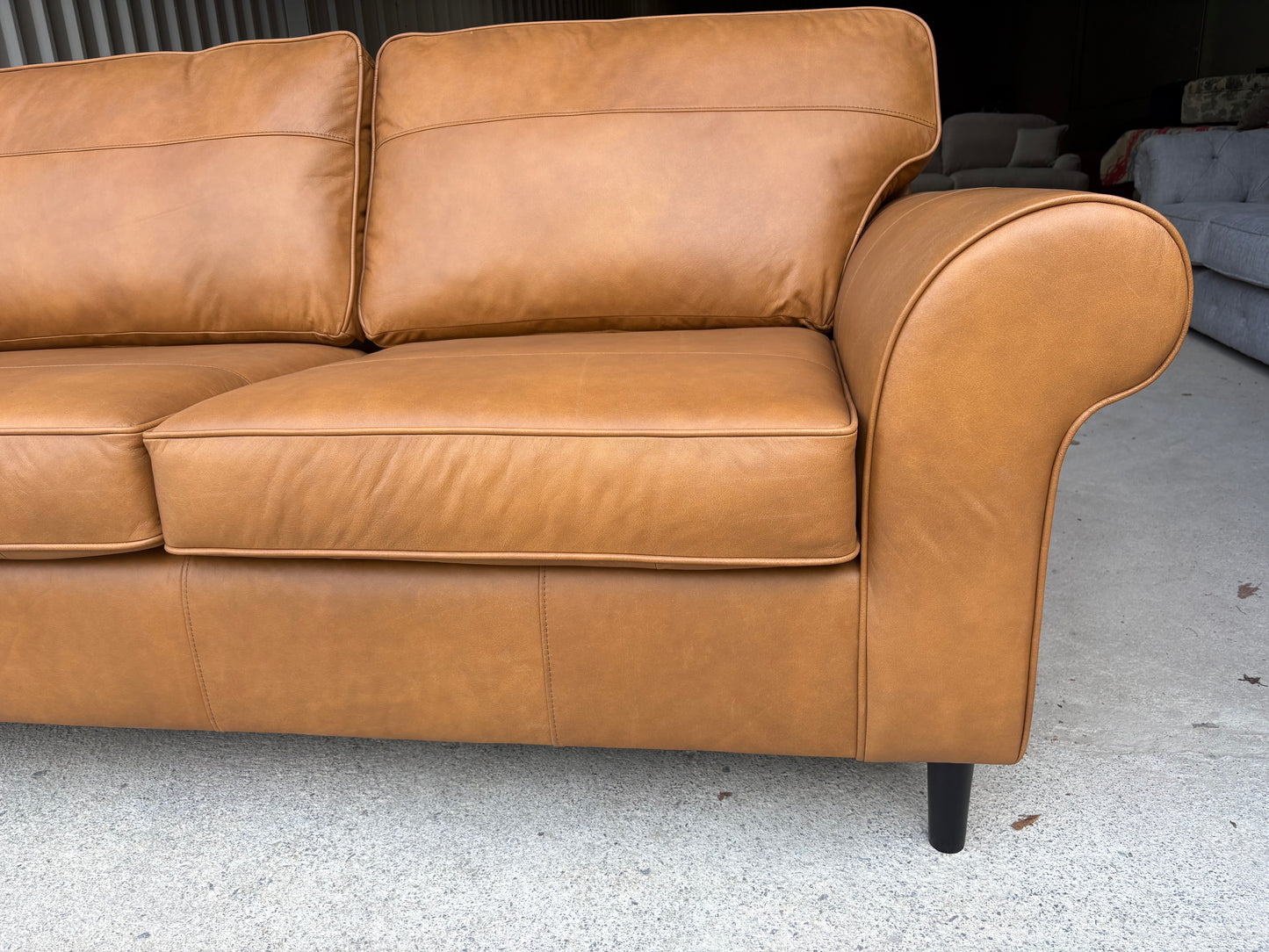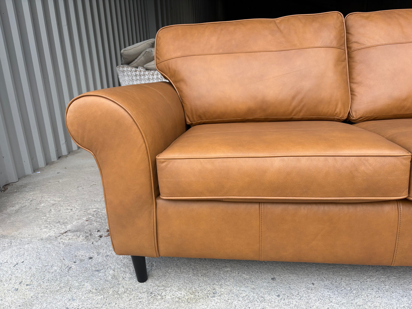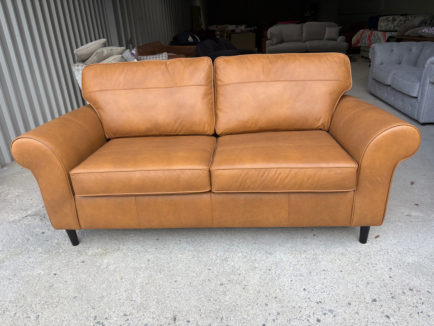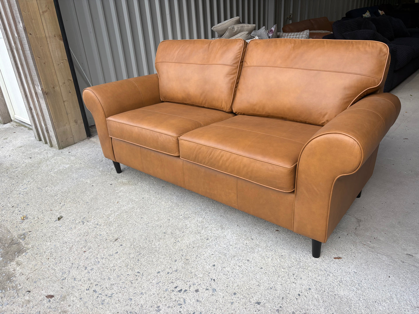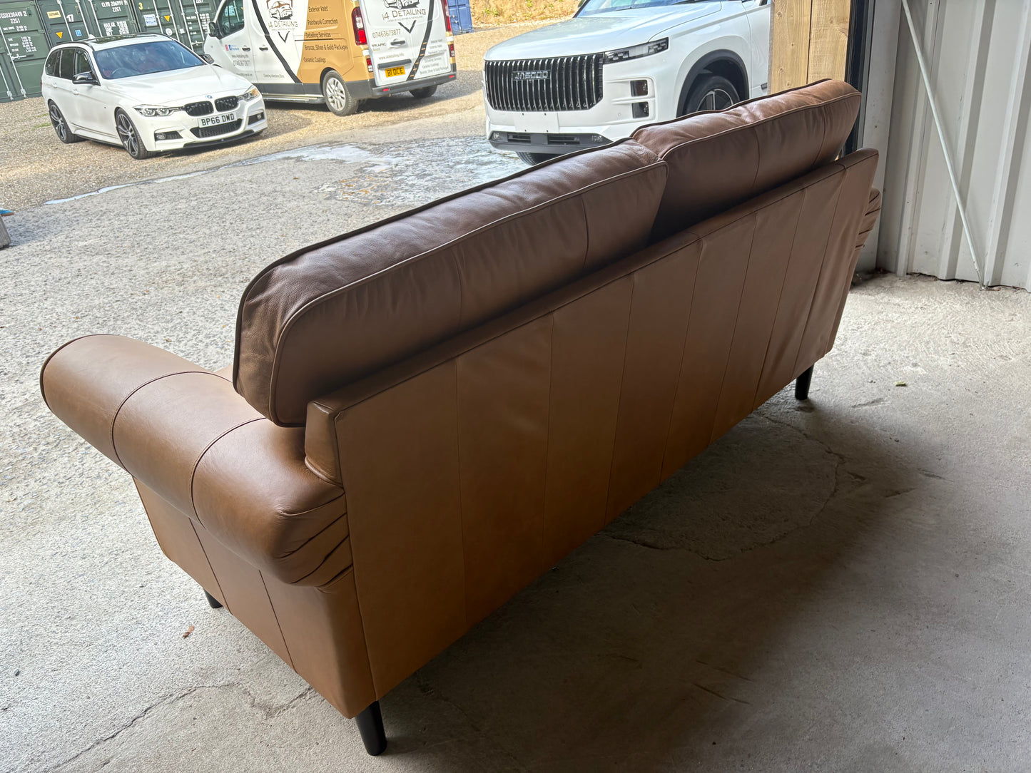 Super stylish brand new end of season 3 seater sofa in a very attractive Tan Leather.