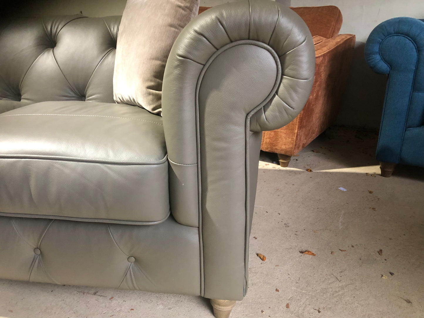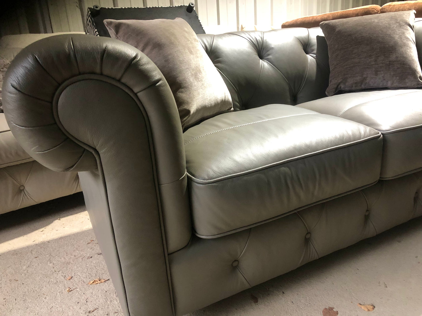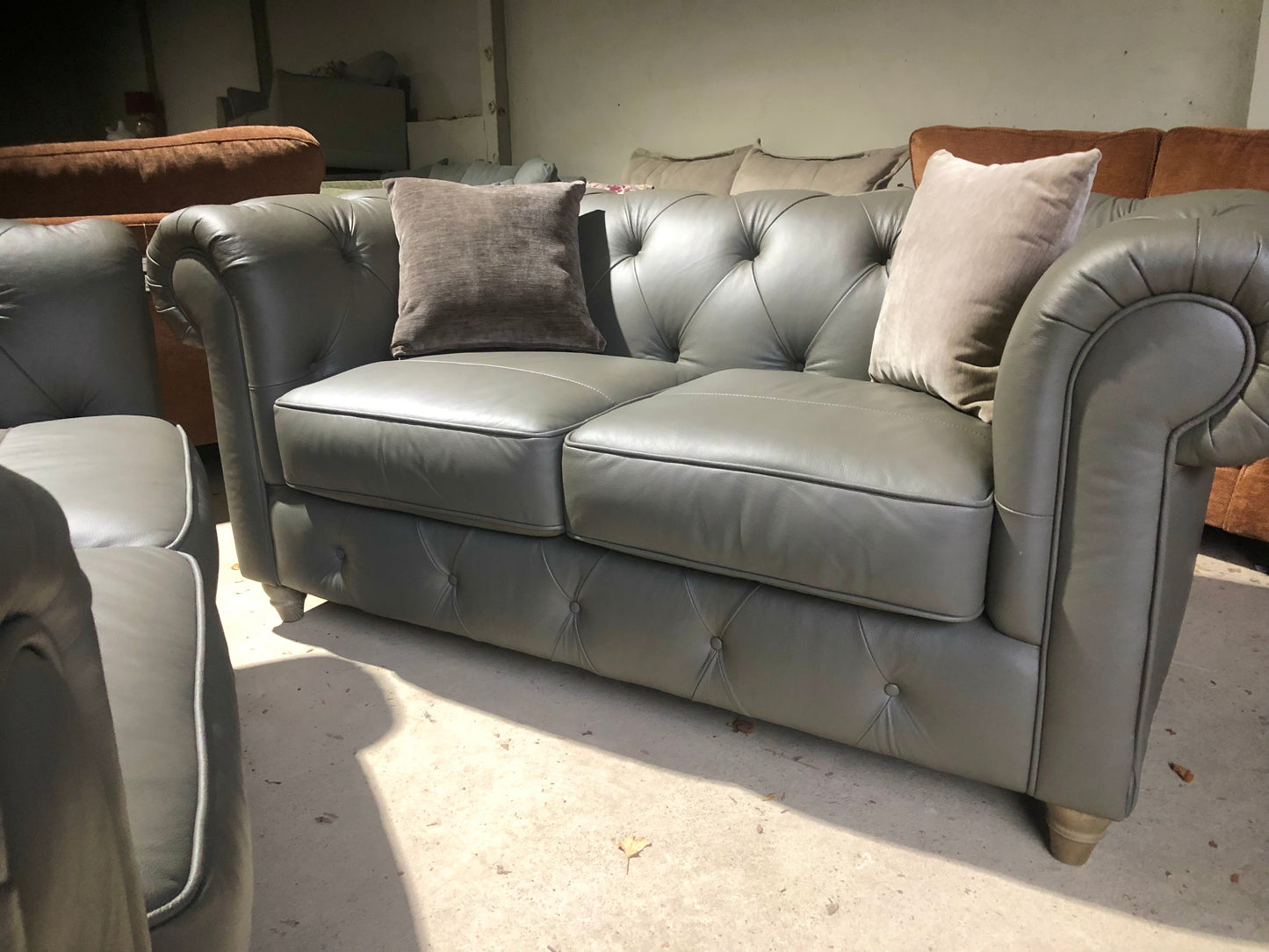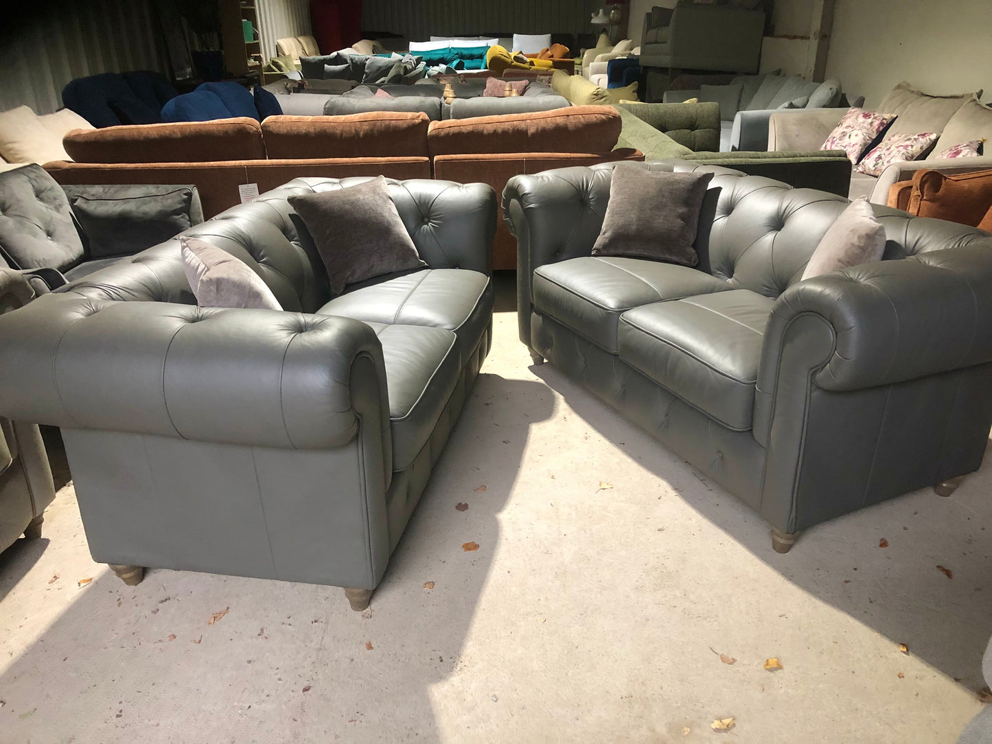 Pair of Grey Leather Chesterfield Sofas
