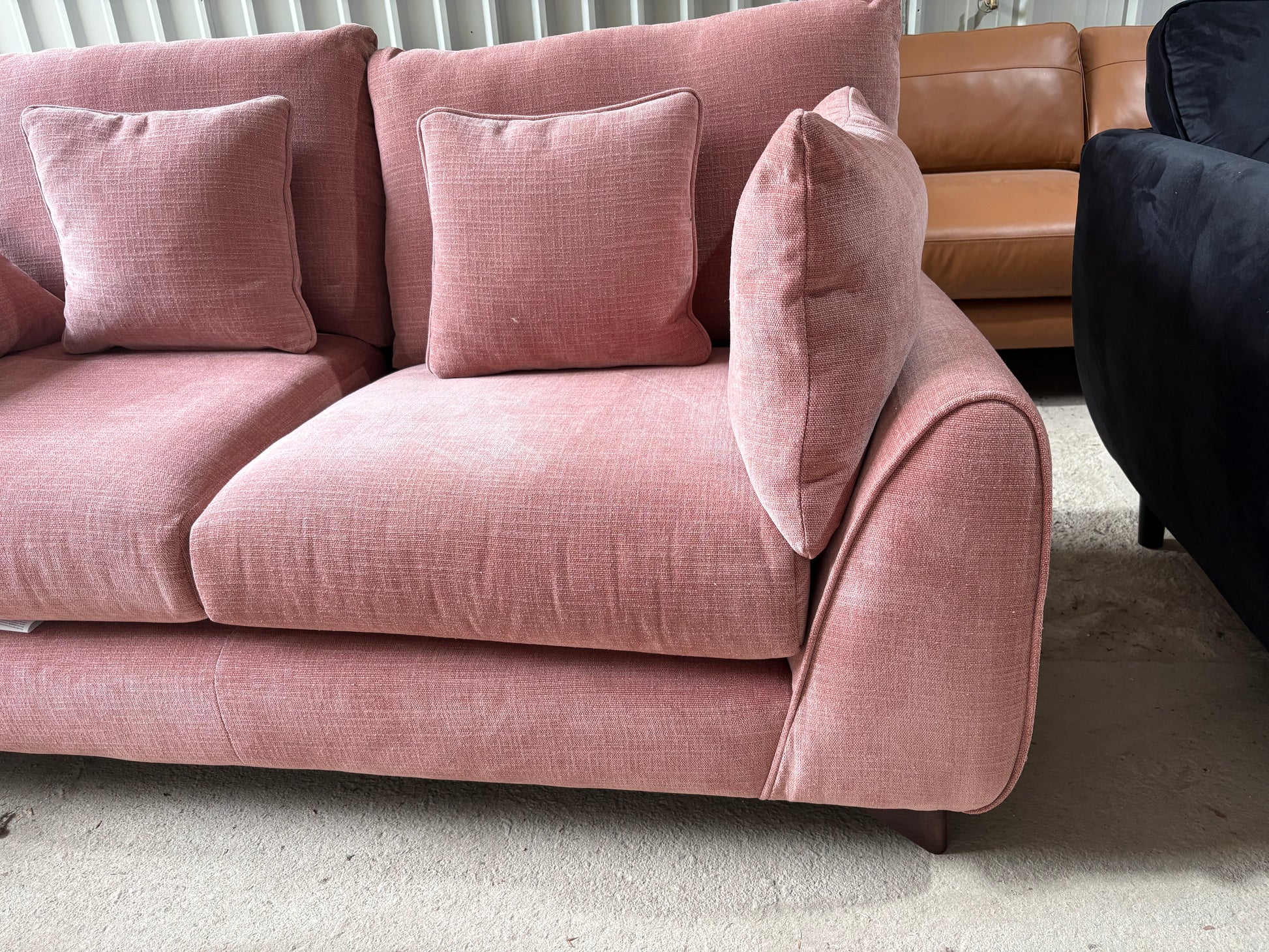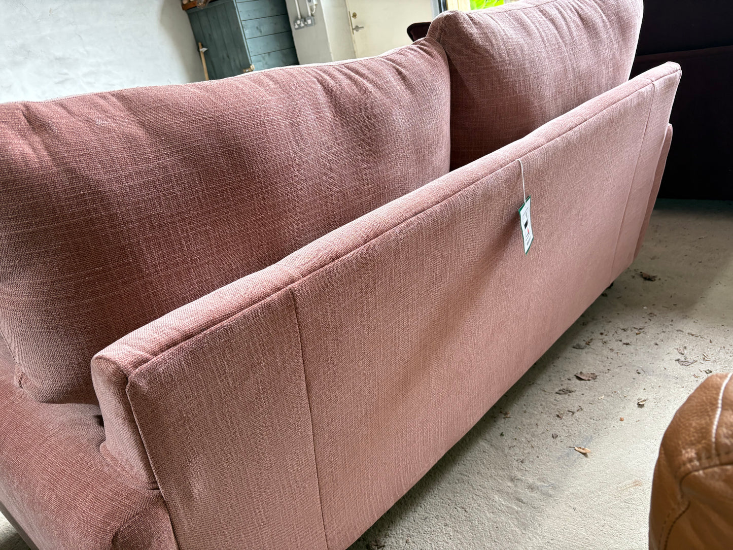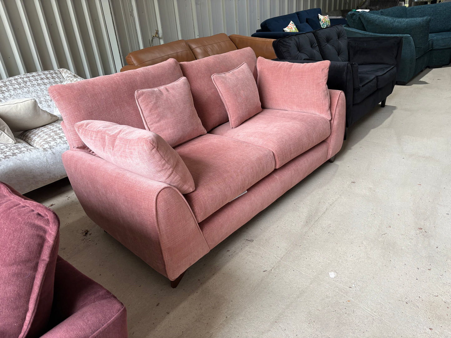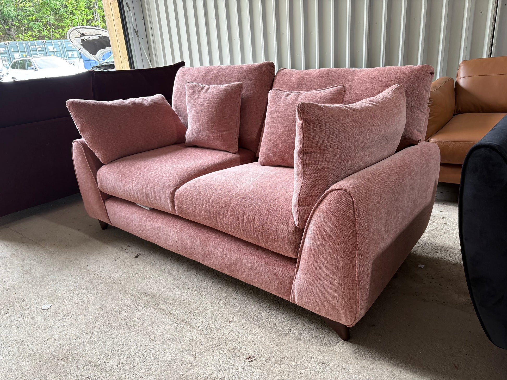 Gorgeous Ex Display 2 seater in ‘Coral’ fabric, a vibrant mix of Pink and Orange.
