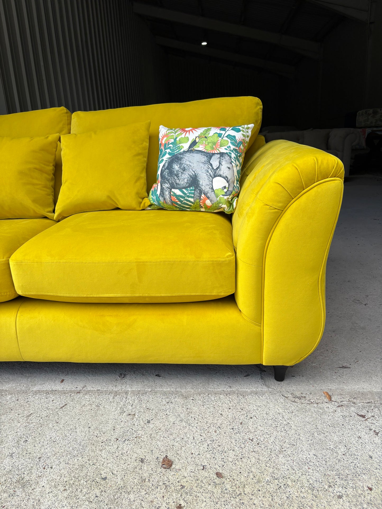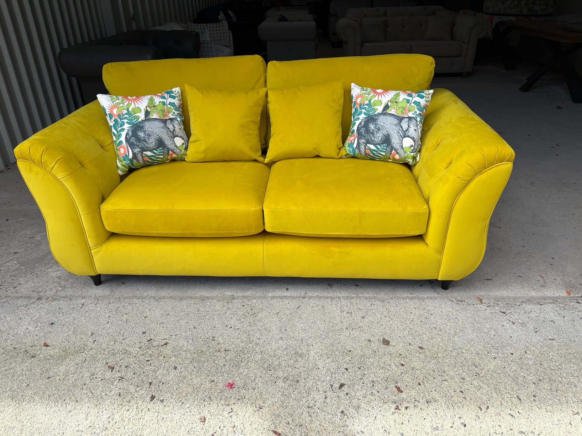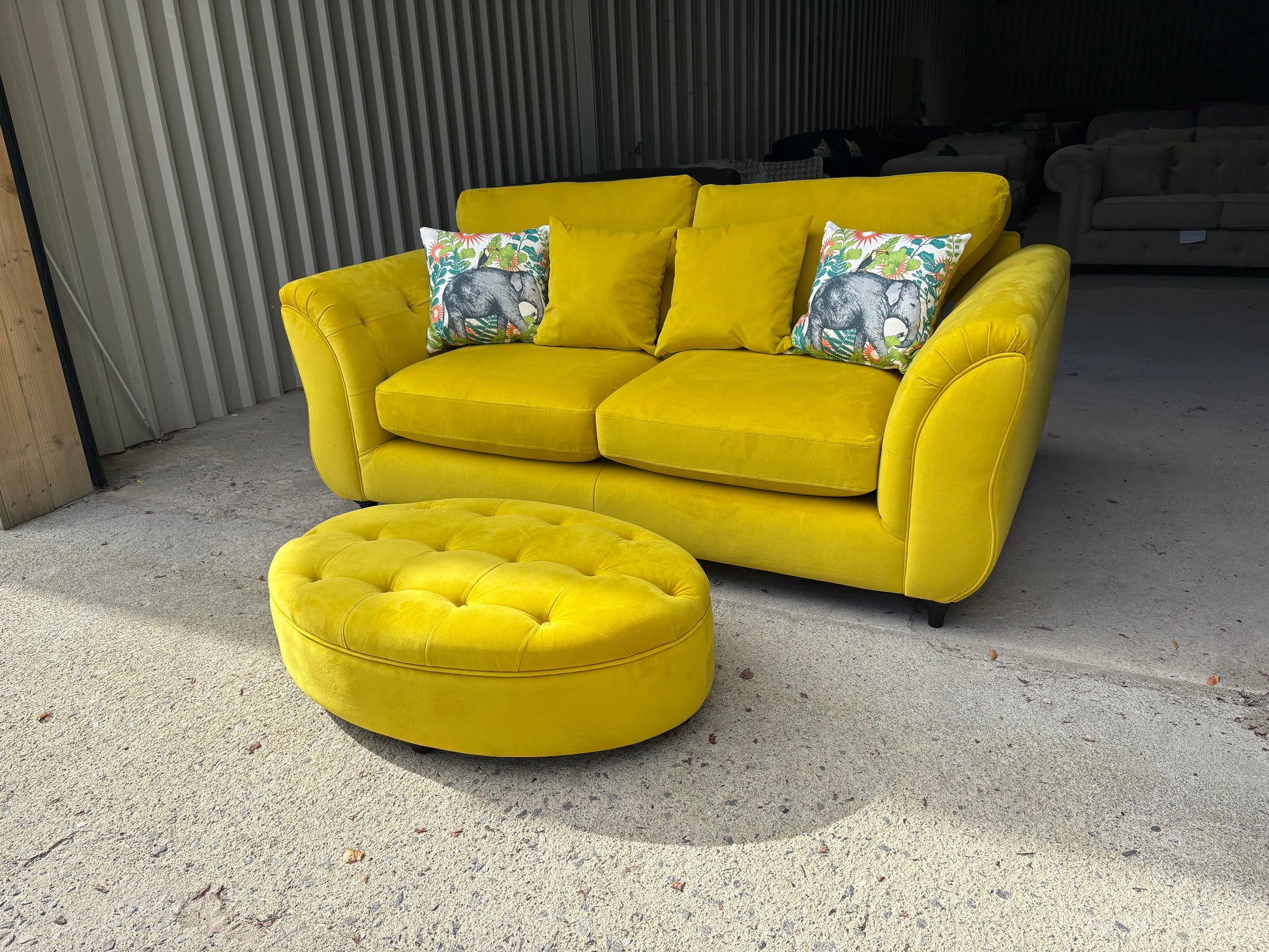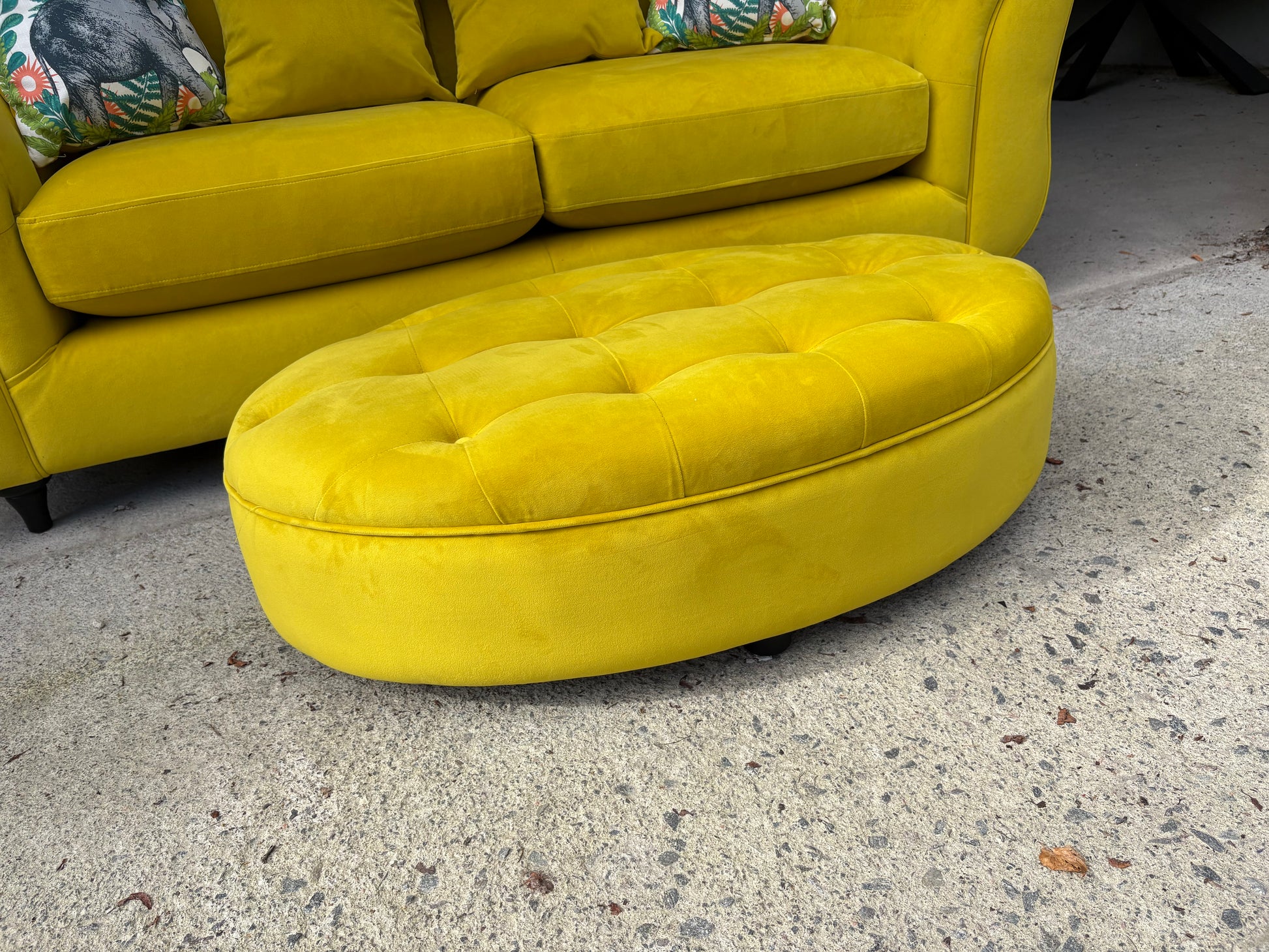 Stunning yellow velvet sofa and footstool